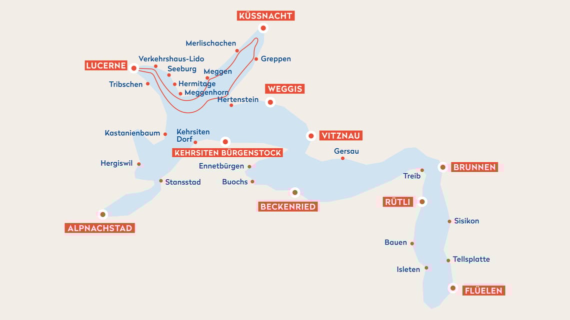 Während der Rundfahrt eröffnet sich ein eindrucksvoller Blick auf die Rigi, die Königin der Berge. Hoch über dem See liegt die sonnige Seebodenalp, erreichbar ab Küssnacht, eine aussichtsreiche Terrasse mit weitem Panorama über den Vierwaldstättersee und die Zentralschweizer Bergwelt.